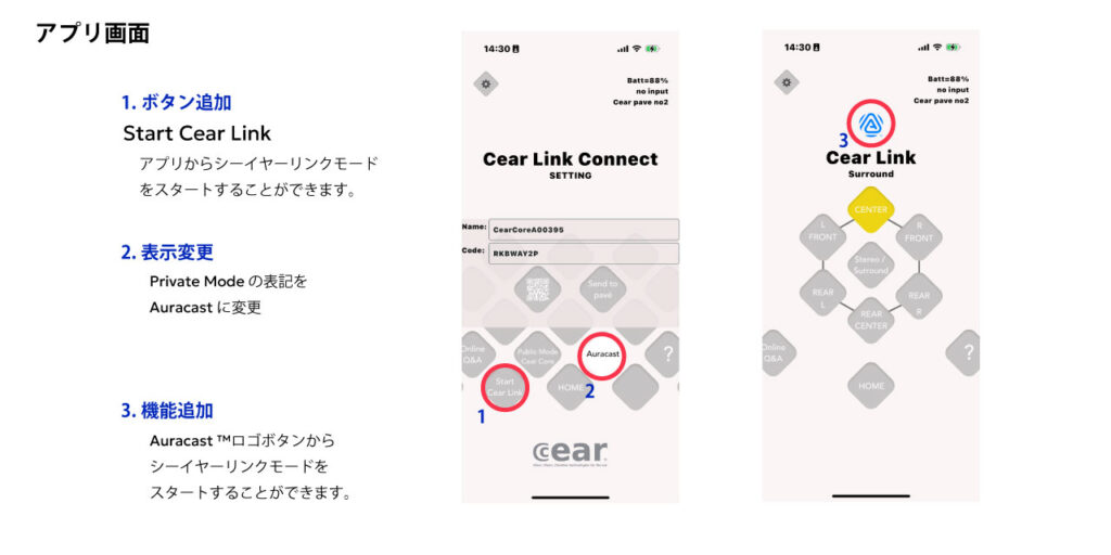 4.機能追加:Cear Link Position 画面のAuracast ™マークがボタンになりました。