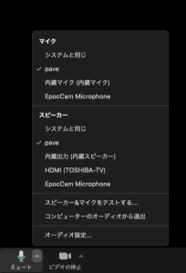 ZOOMにてミーティング画面右下のマイクアイコン横^をクリックしpavéを選択してください。