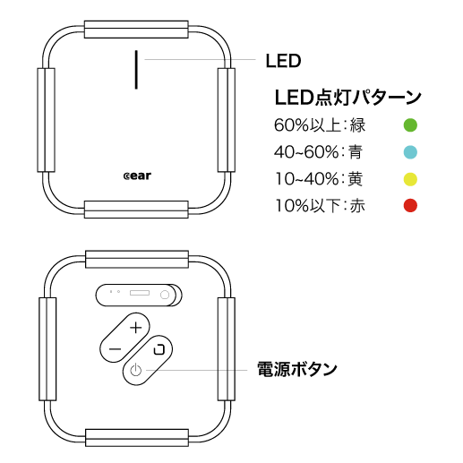 シーイヤーパヴェ本体正面のLEDでバッテリー残量をカラー表示